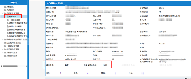 方式2:旅行社可登录北京市旅行社业务管理系统,进入“旅行社质保金—专栏”进行查看。